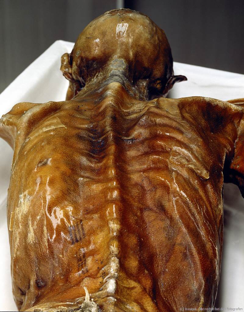 Und er hatte Schmerzen dort, wo sie auch uns heute in fortgeschrittenem Alter plagen: im Kreuz und in den Gelenken. Davon zeugen etwa 60 Tätowierungen, die seinen ganzen Körper übersäen. Im Gegensatz zu heutigen Tattoos entstanden sie nicht durch Stiche, sondern durch feine Schnitte. Sie dienten auch nicht als Körperschmuck. Vielmehr sollten sie mittels Durchtrennung feiner Nervenstränge Schmerzen lindern. In der modernen Schmerztherapie hat ein solches Verfahren allerdings keinen Stellenwert mehr. Weiß man doch heute, dass eine so hervorgerufene Schmerzdämpfung nur von begrenzter Dauer ist. Denn der so durchtrennte Nerv beginnt ungerichtet wieder zusammen zu wachsen und Kurzschlussverbindungen mit fremden Nerven einzugehen, was zu einer wahren Explosion von Schmerzen führen kann.